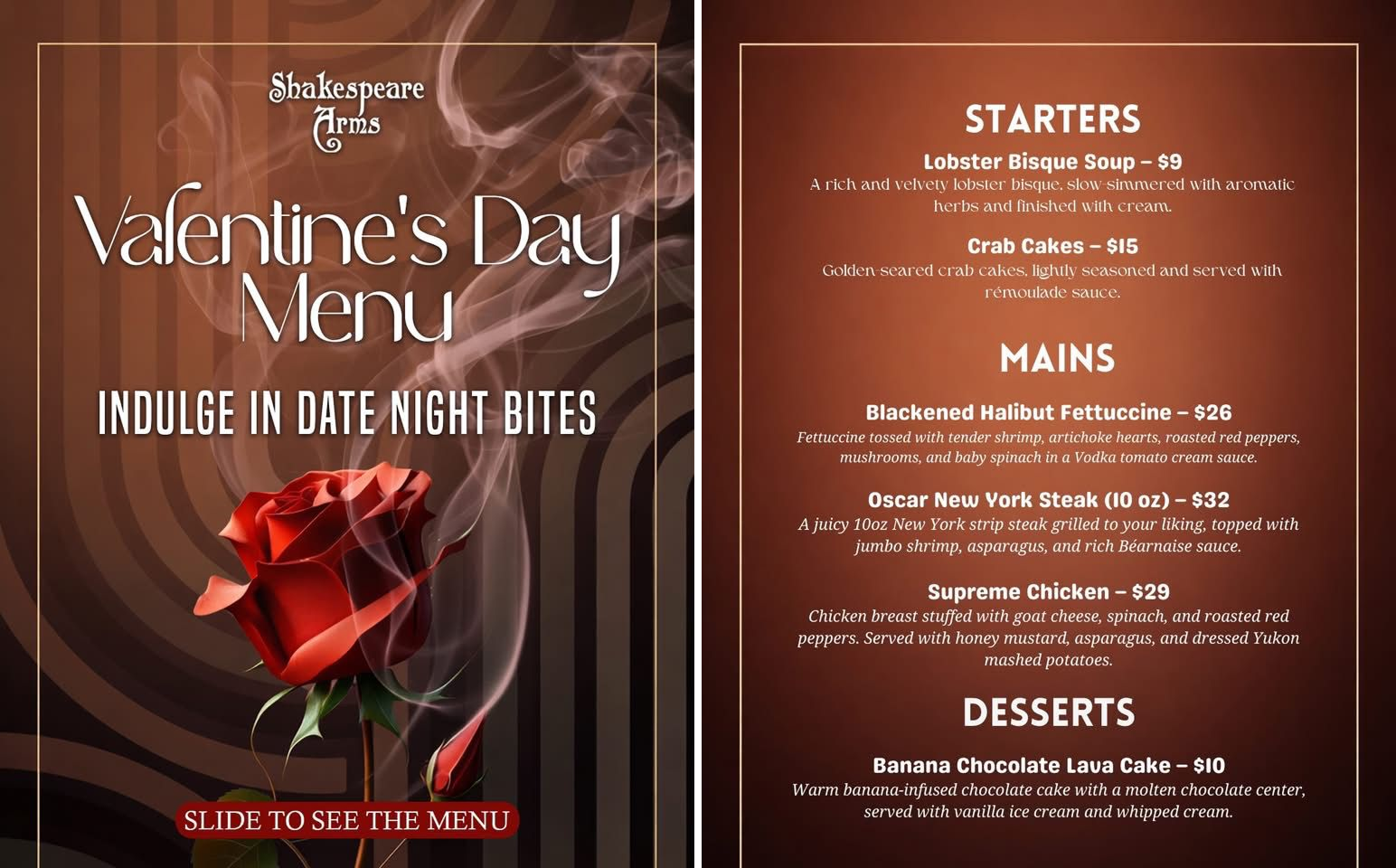 Transport yourself to Olde England with a visit to our traditional English pub, complete with dark wood, post and beam décor, and red velvet seating.